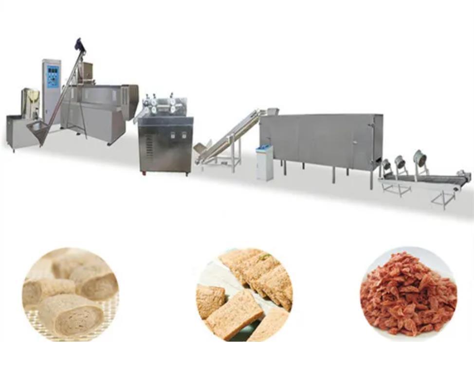 Ta linia przyjmuje odtłuszczoną mączkę sojową i mączkę z orzeszków ziemnych jako surowce. Po wymieszaniu, wytłaczaniu, cięciu i suszeniu mączka staje się teksturą włókien warstwowych. Gotowe produkty mają wysoką zawartość białka, wygląd i smak jak mięso, łatwo wchłaniający się olej, woda i aromat; bez cholesterolu i tłuszczu zwierzęcego, dlatego jest szeroko stosowany w przemyśle mięsnym, w produkcji fast food, w głęboko mrożonej produkcji żywności oraz w różnego rodzaju przekąskach wegetariańskich i żywności.